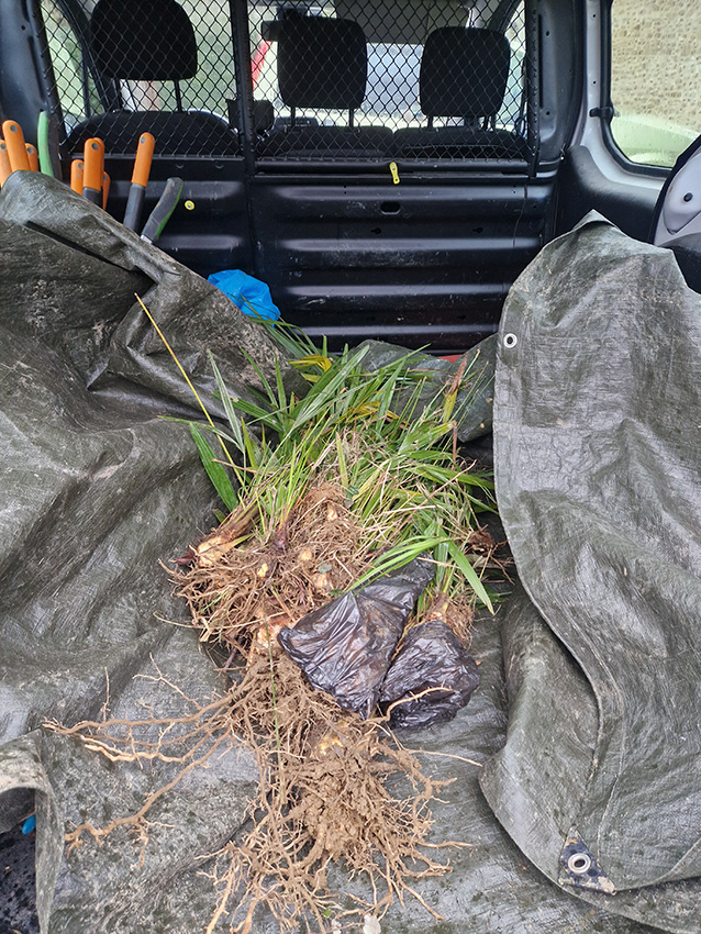 - L’après-midi s’est poursuivie sur la parcelle voisine, également gérée par le CEN Nouvelle-Aquitaine, avec l’arrachage de jeunes palmiers, une espèce exotique envahissante en cours d’installation.