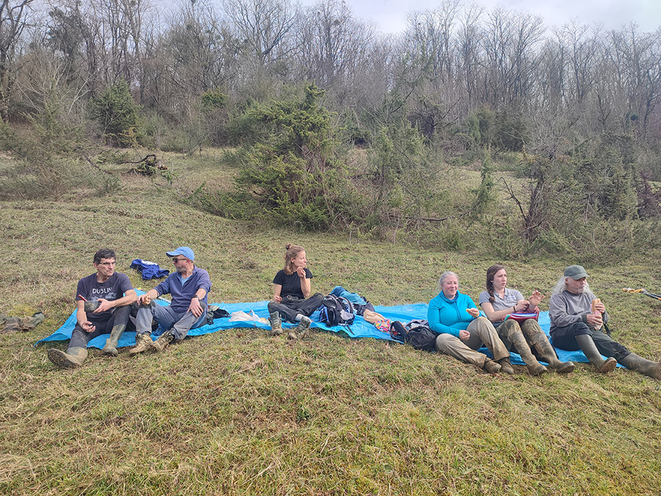 Malgré un terrain particulièrement boueux, propice aux glissades, la météo s’est montrée clémente : nous sommes passés entre les gouttes ! La bonne humeur et la motivation des participants ont largement compensé les conditions parfois sportives. En récompense, le site nous a offert une très belle vue dégagée sur la chaîne des Pyrénées le temps d’un pique-nique, rappelant le caractère exceptionnel de ce coteau.